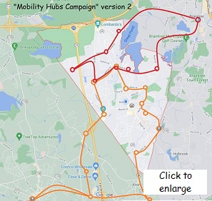 The NEW bus petition is on! Mobility Hub petition -- March 25, 2023 -- info below is from the OLD bus petition!Meeting on Wednesday Jan. 23 2023 meeting including Mobility Hubs: CSJ 101 Calition for Social Justice meeting at 6:30pm-8pm via zoom! Join Zoom Meeting: https://us02web.zoom.us/j/88429836679 Charter Petition to Randolph Town Council - we submitted over 250 signatures, certified in November 2022. Details below. Sign online petition (Change.org) - we have already submitted the offiicial petition but we'll presnet your name to the Randolph Town Council! Download official charter petition (sign and mail in, instead of online) Routes including Stoughton and neighboring towns (RandolphEmeraldNecklace.com) Call to Action (this webpage in a one-page printout) Right now, many residents in Randolph housing complexes have a long walk to get to the bus or commuter rail. That means they must pay for a car, even if they're committed to commuting by T. We seek to change that, so that residents can get to work without a car, saving a huge expense and improving the environment while reducing traffic in Randolph. This petition asks the Town of Randolph to set up a shuttle van or bus service, between under-served residential areas and transit stations and workplaces. For example, from the Rosemont Square apartments on Chestnut West, residents must walk across High Street plus a mile along Chestnut Street to get to the nearest bus stop, the #240 on North Main Street. We propose a town-run shuttle van to replace that long walk, and many others like it. We submitted a "Charter Petition", which entitles us to a hearing and a vote at the Randolph Town Council. We would like YOU to come and speak in favor of this petition! Tell your commuting story, and how a shuttle van would help -- come speak in person in Spring 2023, and/or write a letter before then. If the Randolph Town Council votes in favor, we would begin setting up a shuttle van in 2023. If the Randolph Town Council votes no, we have the right to put this issue on the November 2023 ballot. We would need your help for that too -- gathering petition signatures in spring/summer 2023. Setting up a shuttle van is expensive -- probably over a million dollars in annual expenses plus well over a million for initial setup. There's a state program called Mobility Hubs -- implemented in Boston and in Acton/Maynard and others -- in which Randolph should participate.