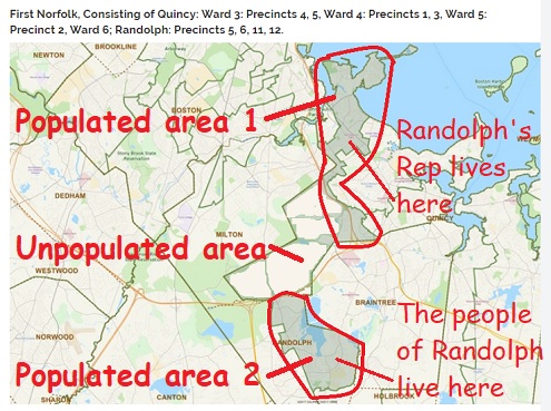 Randolph is split into three state House districts, and none of our state representatives in the Massachusetts House are from Randolph. That’s not coincidence – re-districting to get political power for Randolph requires political will and political effectiveness – both of which are lacking in Randolph’s political representatives.